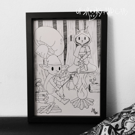 Eine Nacht im Pilzwald - Kunstdruck DINA5 - Fantasy Goblin und Katze