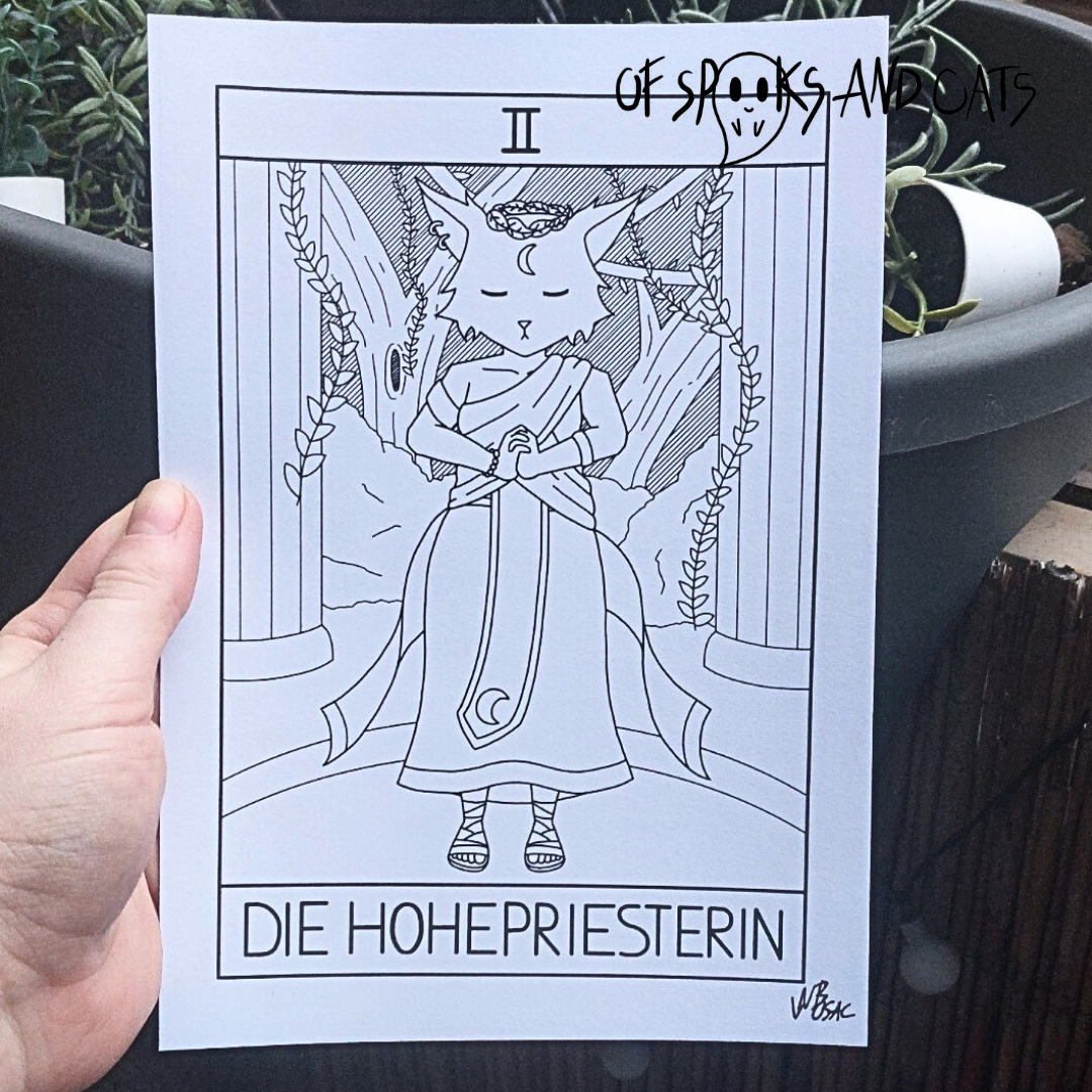 II. Die Hohepriesterin - (Digitaler) Kunstdruck DINA5 - Tarot Heilerin Katze - Große Arkana